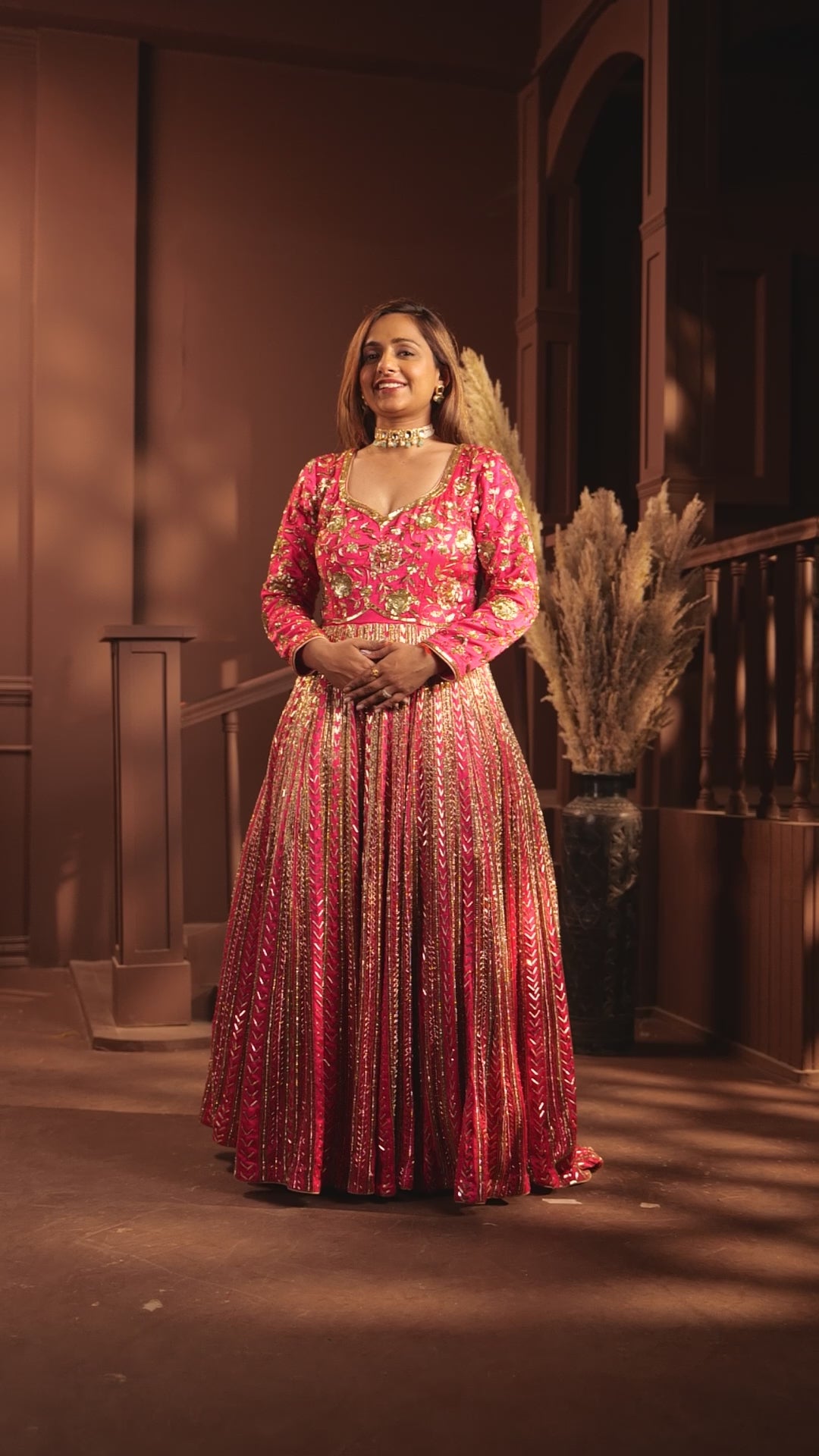 Introducing our Ethereal Blossom: Hand-Embroidered Pink Silk Gown, a mesmerizing creation that combines ethereal charm with exquisite craftsmanship. This enchanting gown is meticulously handcrafted by our skilled artisans who dedicated over 200 man-hours, working diligently for 20 days, to bring this vision to life.